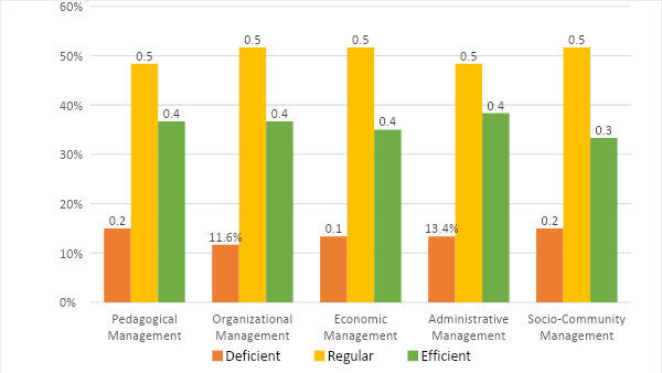 Alpízar et al.(43), define the EM as main regularities and requirements in management and financing, in the development of the substantive processes in the IIEE, it is necessary to transform a timely process in the improvement of management in strategic process. The fulfillment of the mission demanded by the educational community to achieve sustainable development and social responsibility, are currently characterized by human values, and living conditions.