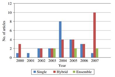 Figure 1. Yearwise distribution of articles for the types of classifier design