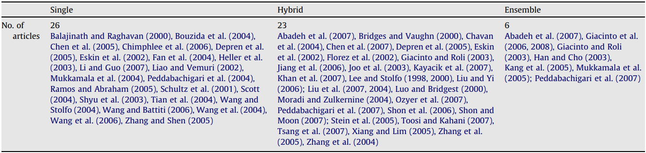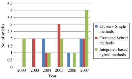 The results indicate that “integrated-based hybrid classifiers” were the most popular approach for intrusion detection, especially in 2007. Cascaded hybrid classifiers also received significant attention in the literature. However, because there is so little research on “group workbooks” that they are not discussed with this study.