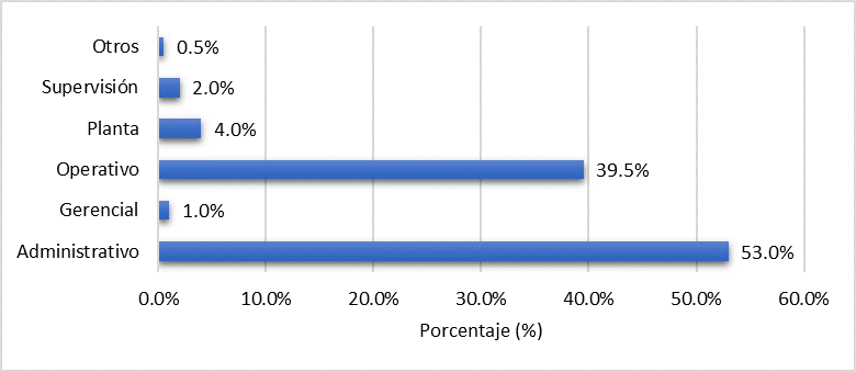 De acuerdo con el objetivo principal de la investigación, se tuvo como propósito analizar la cultura y control de la gestión de seguridad e higiene en el trabajo para reducir los accidentes laborales de los trabajadores en empresas de la ciudad de Juliaca-Puno, 2022. Dentro del análisis descriptivo de las variables, se evidenció una tendencia del 59 % respecto a la actividad económica predominante relacionada con el comercio y, en un segundo puesto, aquellas asociadas a la industria manufacturera (17 %). Asimismo, un 53 % de los trabajadores desarrollan actividades asociadas al área administrativa, mientras que el 39,5 % realizan labores operativas.