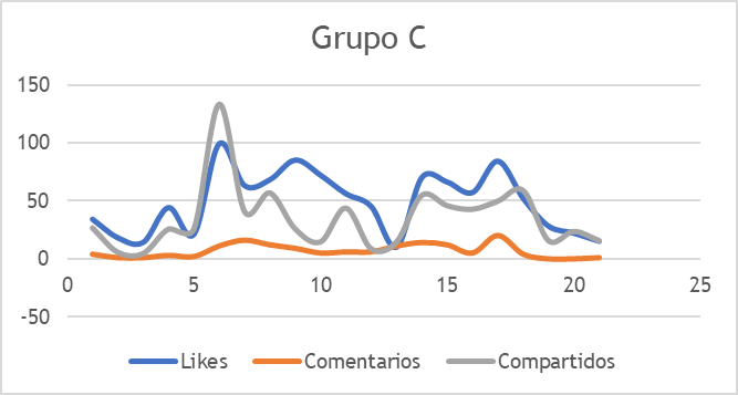 Las publicaciones que reciben menor apoyo, con cifras menores a 100 reacciones, se consideran de bajo impacto e influencia por parte del público. Las publicaciones presentadas en la tabla perteneciente al “Grupo C”, abarcan falencias descritas en los anteriores grupos, añadiendo el incorrecto uso de las descripciones. Por esta razón, el mensaje que desean transmitir no tiene la atención total del público, logrando que directamente afecte las interacciones y visibilidad de la página de la Fundación.