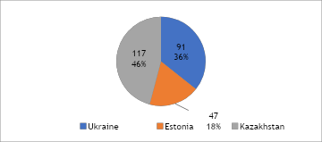 The study involved employees of tourism infrastructure facilities and travel companies involved in international tourism from Ukraine (26 companies), Estonia (11 companies) and Kazakhstan (31 companies). On average, 3 or 4 employees from each company participated in the study. The distribution of participants in the study is shown in figure 1.