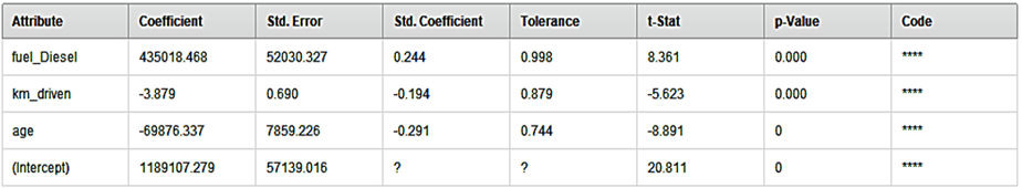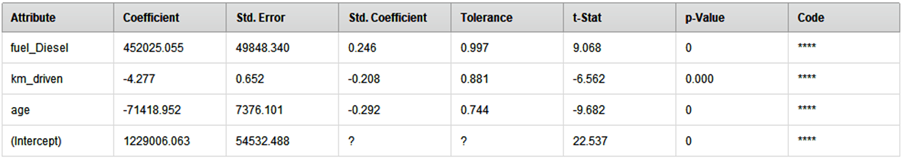 3. P-value shows the significance of attributes participated in model (desirable is less than 0,05).
