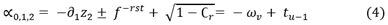 The equation 4 is denoted by ∝0, where Changes in safety circumstances or worker behavior on the building site may be associated with the variables ∂1z2. The system is subject to external influences and probabilistic components through f(-rst)+ √(1-∁r), where it represents a factor that may decay exponentially due to risk ωv or learning decay represents adjustments depending on real-time feedback t(u-1).