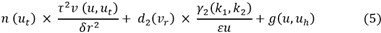 In the equation 5, (τ2v(u,ut))/( δr2) represents the time-dependent reaction of the online training system scaled by safety-related parameters n (ut). The equation d2(vr) reflects the changing response of the system depending on user input (γ2(k1,k2))/εu. The general performance measure or result depending on user input and previous data is probably represented by g(u,uh).