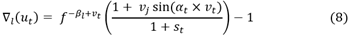 To illustrate the impact of changes in user input on the training environment, the equation 8 ∇l(ut) shows the change in gradient of customer input. It is probable that the function f(-βl+vt) modifies the effect of user input depending on parameters like the importance 1+st of the training component and user participation (1+ vj sin(αt×vt).