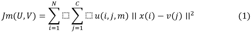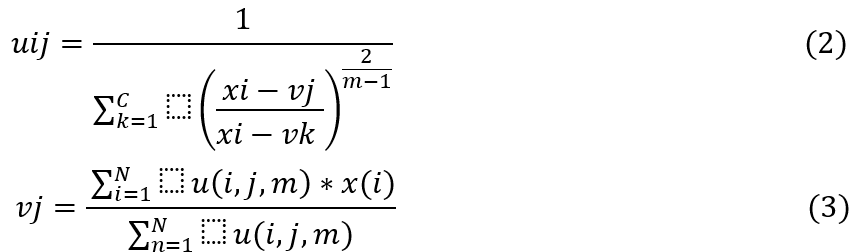 Where, u(i,j) is the degree of membership of x(i) in the cluster j, v(j) is the centroid of the cluster, and m is the fuzziness index greater than 1 for the clustering process.
