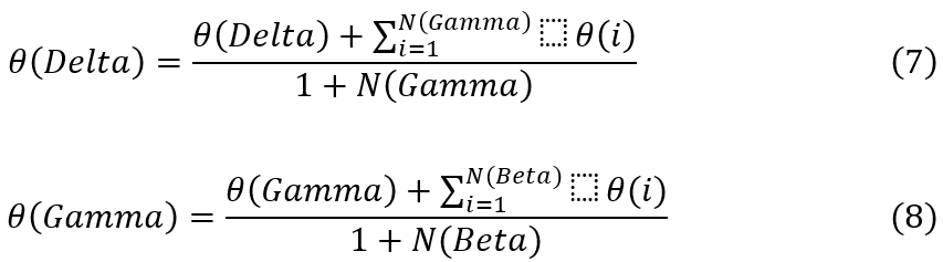 N(Alpha) is nu mber of Alpha particles. Similarly, Wolves with fw<2*fth are labeled as ‘Delta’, and their fitness is updated utilizing formula 7. All other Wolves are marked as ‘Gamma’, and their fitness is updated via formula 8.