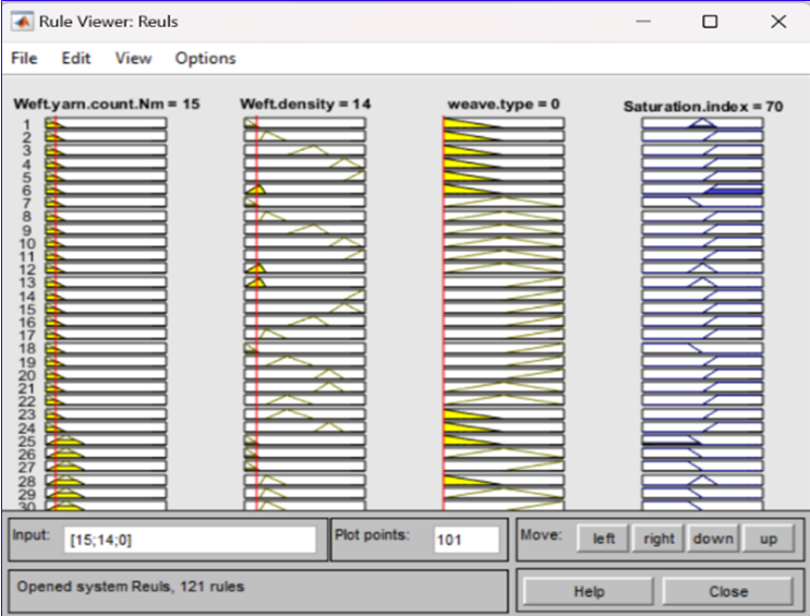 However, to the best of our knowledge, no study has yet been carried out on the prediction of weaving saturation of a new fabric using a fuzzy system.(2)
