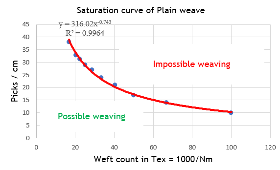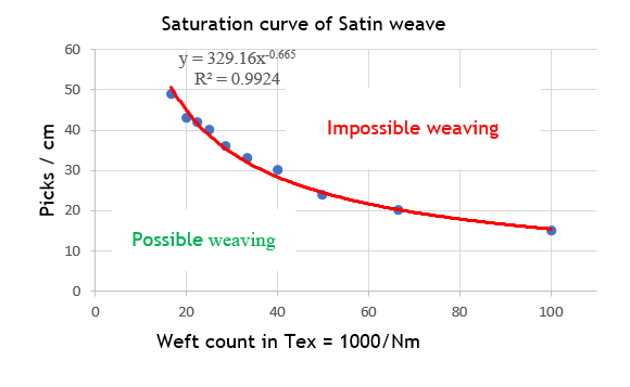 For the experimental part, our research focuses on exploring weaveability limits and saturation indices in the weaving domain. Understanding these limits is essential for optimising textile manufacturing processes and guaranteeing the quality of end products. In addition, we will examine saturation indices, which determine the maximum yarn absorption or retention capacity of a new fabric. Our experimental section will present the results of these earlier studies, allowing us to deepen our understanding of these important aspects of weaveability.