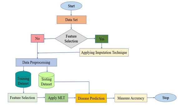 Conclusiones: los modelos de predicción mencionados se basan en varios MLT supervisados. Se aplica una validación cruzada de diez veces. Además, el autor también propuso un diagrama de flujo del cáncer de mama utilizando MLT.