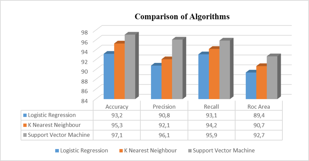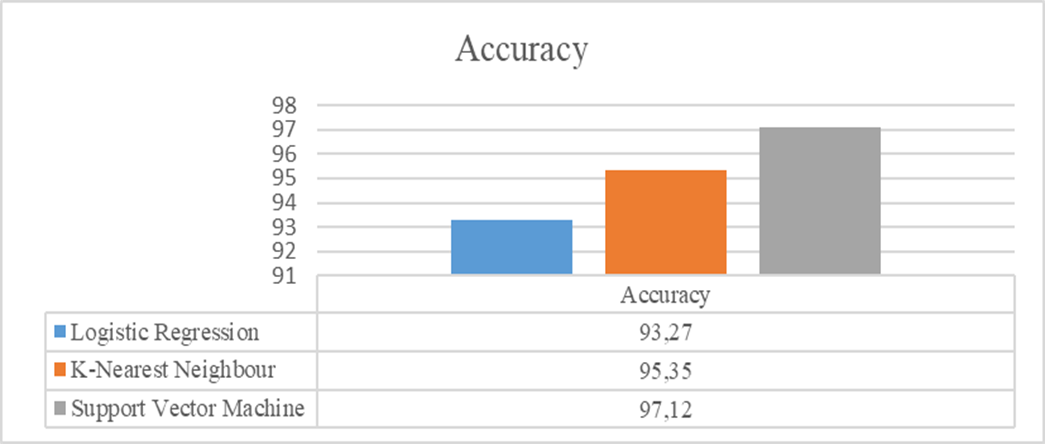 Results: this research analyses the classification accuracy of different MLT: Logistic Regression, Support Vector Machine, and K-Nearest Neighbour. According to experiment results, SVM has the best accuracy of all algorithms, at 97,12 %.