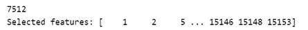 The table 1 shows feature selection methods and their reduction efficacy on the Ovarian Cancer Dataset. DBO algorithm reduced the dataset to 10 997 genes, GA to 9875 genes, while the proposed Hybrid HGDBO method significantly reduced the original dataset from 15 154 to 7512 genes. The reduction efficacy is 50 % for Hybrid HGDBO, 35 % for the Genetic Algorithm, and 27 % for Dung Beetle Optimization on the ovarian cancer dataset. Figure 6 indicates total 7512 features has been selected by proposed hybrid HGDBO feature selection approach.
