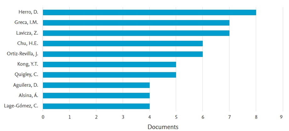 Finalmente, en cuanto a los autores más influyentes y sus redes de colaboración, nombres como Herro, Quiley, Lavicza, Ortiz-Revilla., Mark, Gura y Yonghoon Lee destacan por su contribución a la conceptualización y difusión de prácticas STEAM en la educación. Estos autores no solo lideran en producción científica, sino que también son fundamentales en la creación de redes globales de colaboración académica. De acuerdo con un estudio de Research in Science Education del año 2021, los investigadores clave en este campo tienden a estar concentrados en instituciones de alto prestigio, lo que facilita el establecimiento de colaboraciones internacionales y la diseminación de sus hallazgos a través de conferencias y seminarios de alcance global.