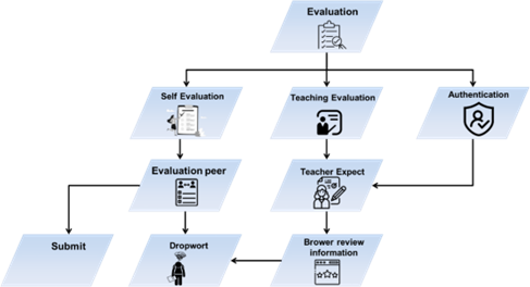 The educational AI network is intimately integrated with the framework for evaluating the quality of multimedia instruction, which is utilized as a subsystem of the educational construction. However, a certain amount of independence is necessary to promote the system's further expansion. The essential data processing, appraisal index management, measurement and oversight, and findings management are all included in the framework. As per system specifications, the AI-MCP framework comprises useful elements like a database administration element, an element for evaluating management parameters, an assessment element for predictive management, and a management evaluation of outcomes element. The principal structure evaluation flow chart is shown in figure 2. First, the course selection perspective was used to build the entity-relationship diagram for teachers' assessments. AI technology combines the essential diagram and an administrator could accomplish it.