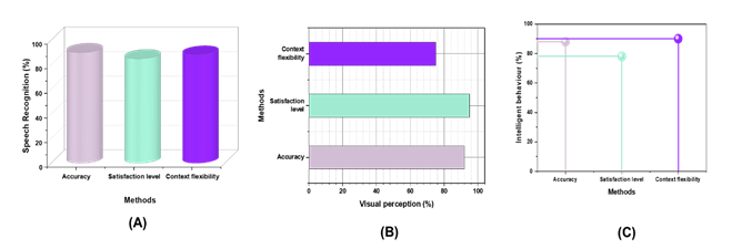 Figure 3. Evaluation of Intelligent Behavior (C), Visual Perception (B), and Speech Recognition Systems' Performance (A)