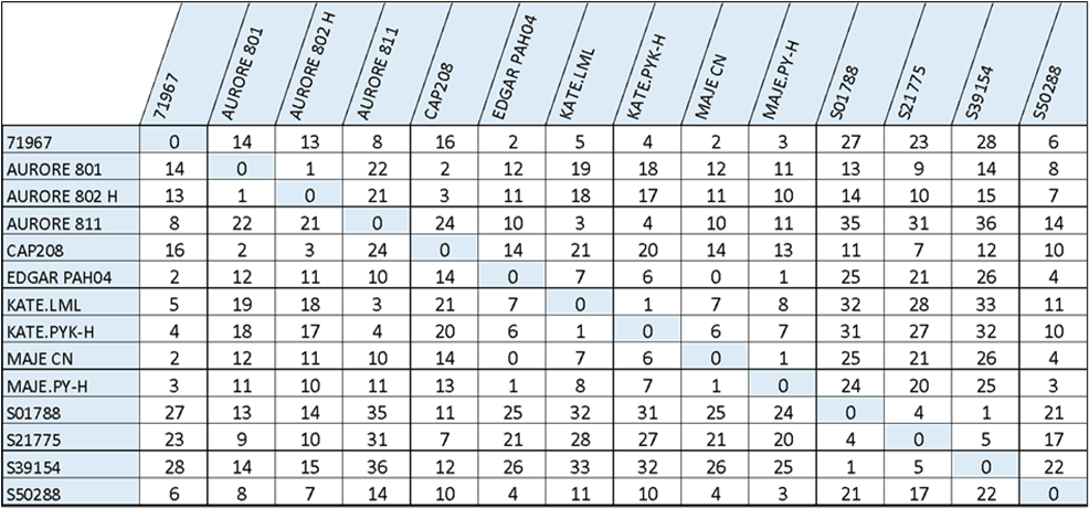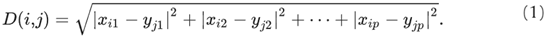 These points represent the same features as measured and recorded from both P and Q dresses. The set D of Euclidean distances between dress x and all successive dress y∈Y is calculated using equation 1.