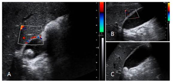 El diagnóstico está compuesto por una combinación de parámetros clínicos, bioquímicos y radiológicos. El ultrasonido abdominal ha demostrado ser el método con mejor costo-efectividad (figuras 2), y a pesar de que la gammagrafía con ácido iminodiacético hepatobiliar (HIDA, por sus siglas en inglés), es considerada el estándar de oro, su disponibilidad es limitada.(4)