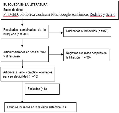 La búsqueda de estudios se llevó a cabo en bases de datos médicas y de ciencias de la salud. Los términos de búsqueda incluyeron combinaciones de palabras clave relacionadas con DeCS/MeSH coagulation times, non-cardiac elective surgery, entre otras; unidos por el operador booleano AND y los filtros Adultos, desde 2018, y ensayos clínicos controlados. Las bases de datos exploradas fueron PubMED, biblioteca Cochrane Plus, Google académico, Redalyc y SciELO (figura 2).
